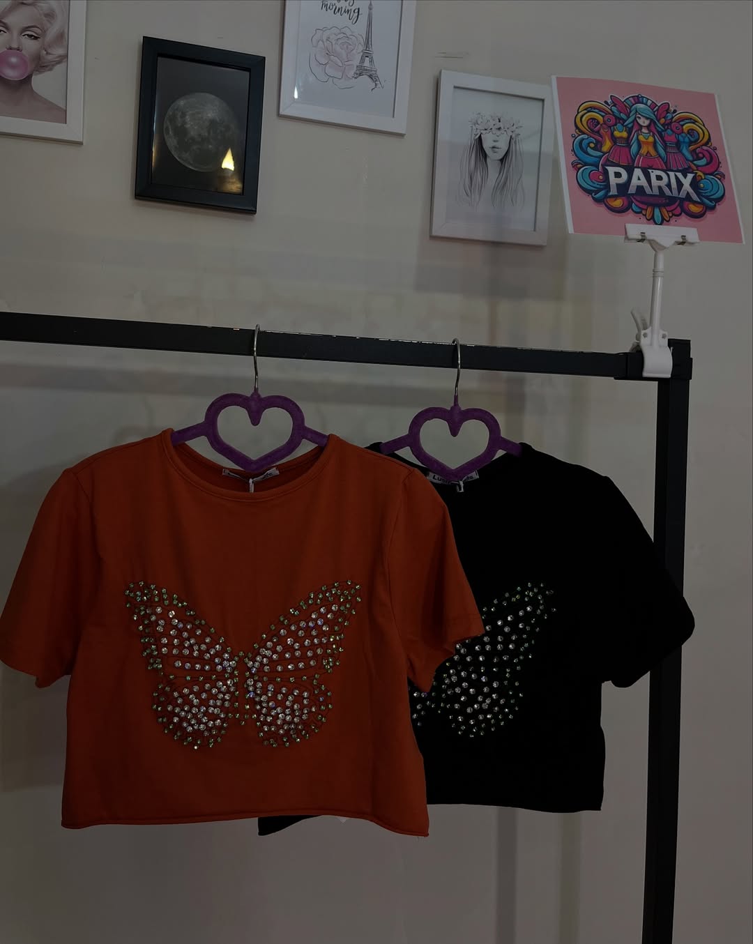 پروانه شو، بدرخش! تیشرتهای نگینی خوشگل ما با طرح پروانه رسیدن! هم مشکی داریم، هم آجری، انتخاب با توئه! کدومو میپوشی برای یه استایل جذاب بهاری؟ آسان و سریع از سایت ارسال سریع